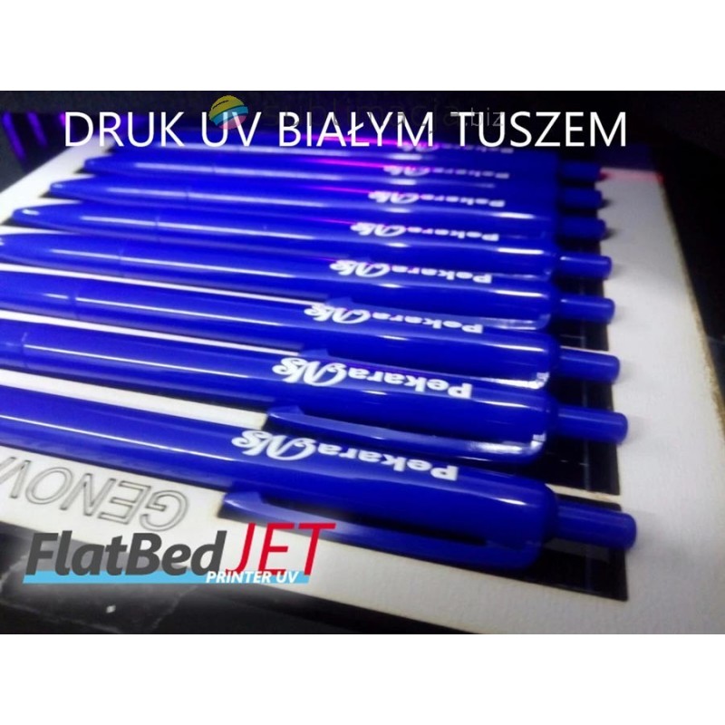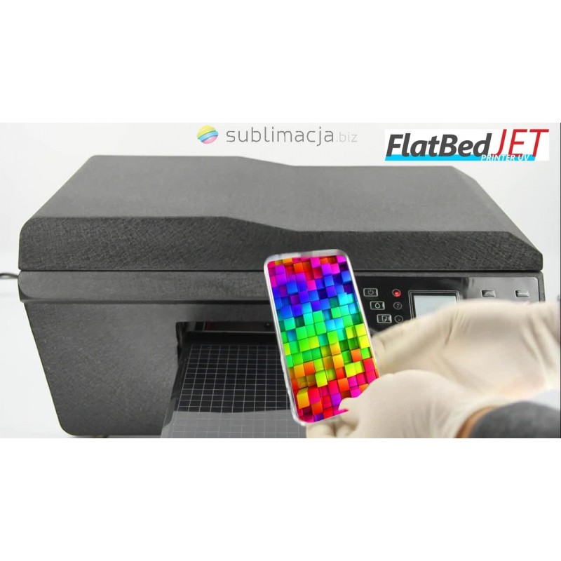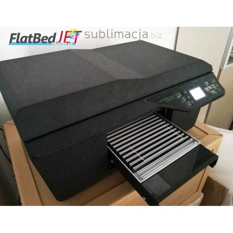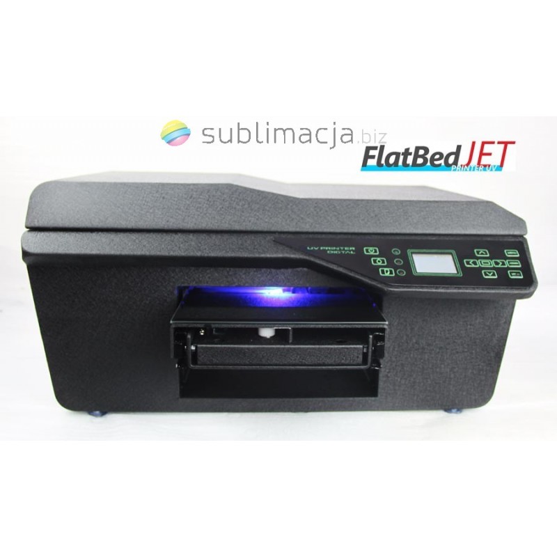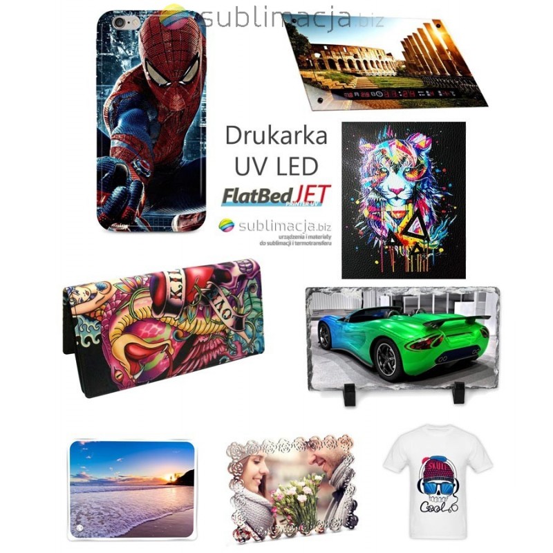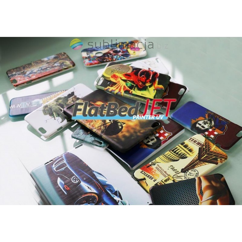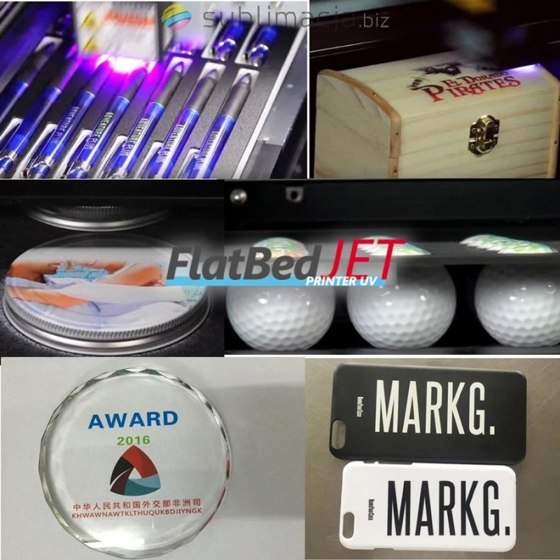 Drukarka UV FlatBed Jet Printer - wybór materiału do druku jest nieograniczony mogą to być materiały tekstylne, tabliczki znamionowe, szkło, płyty, różnego rodzaju znaki, identyfikatory i znaczki, kryształy, PCV, akryl, metal, plastik, kamień, skóra. Nie trzeba aktywować powierzchni, druk jest intensywny i kolorowy, odporny na zużycie, ścieranie i promieniowanie UV. Drukarka jest łatwa w obsłudze.