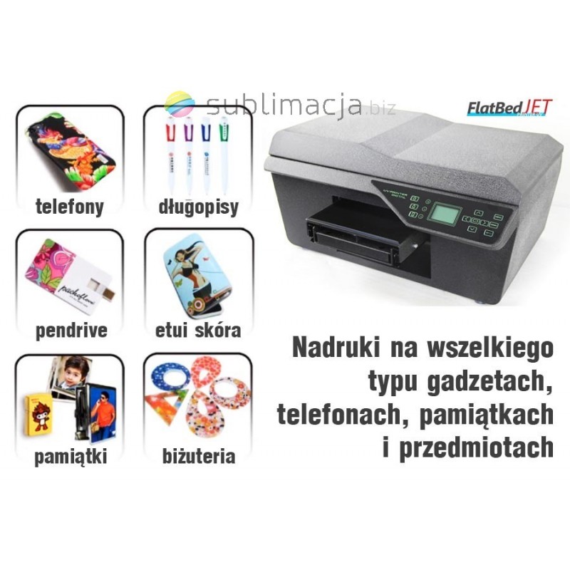 W skrócie: Za pomocą tej drukarki UV można drukować na większości materiałów: sztywnych, elastycznych, tworzywach sztucznych (ABS, PC, PE, PP, PU, PVC, itp.), akryl, metal, drewno, skóra, szkło, kryształ, papier, itp. Ddzięki zastosowaniu w drukarce lamp led wykonany wydruk nie wymaga utrwalania na dodatkowych urządzeniach oraz suszenia, ponadto wydruk jest odporny na warunki atmosferyczne w tym promieniowanie UV.