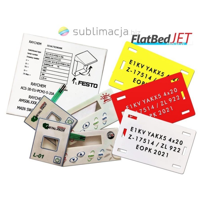 Drukarka UV FlatBed Jet Printer - idealna do wykonywania wszelkiego typu tabliczek znamionowych kablowych i opisowych. Trwałe nadruki odporne na warunki atmosferyczne i UV.