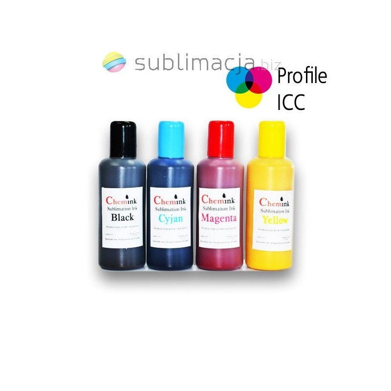 Komplet tuszy 4x100ml - atrament sublimacyjny do drukarek z głowica piezzoelektryzną Profile kolorów ICC GRATIS. Profile do naszych tuszów sublimacyjnych wraz z instrukcja instalacji do pobrania poniżej.