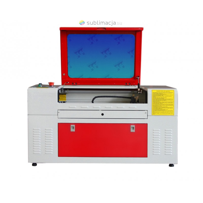 Kompresor Air Assist, Red dot pointer – czerwona plamka, wyciąg spalin, aluminiowy stół roboczy dwustronny (cięcie – grawerowanie) typu nożowego lub typu plaster miodu, zapasowy element optyczny, chłodzenie cieczą w obiegu zamkniętym, okulary ochronne |