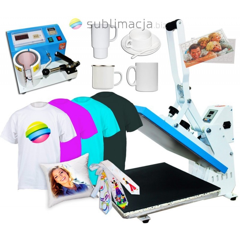 Za pomocą prasy można przenieść swoje wydruki - obrazy na prawie wszystkie materiały (bawełna, jedwab, len, poliester...), a także po wymianie elementu możemy przenosić wydruki na kubki. Płyta grzewcza TEFLONOWA. Regulowany docisk płyty grzewczej.
