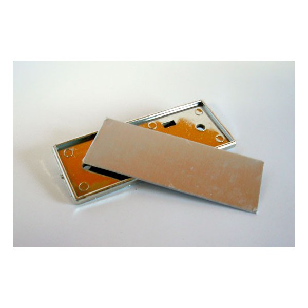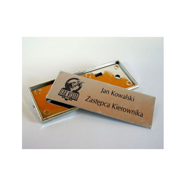 Zestaw zawiera metalową plakietkę wraz z przypinką na agrafkę. |
