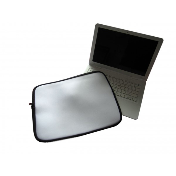 14 calowy pokrowiec na laptopa do wykonywania nadruku w technologii sublimacji. Pokrowiec wykonany jest ze spienionej gumy pokrytej poliestrem. Posiada on zamek błyskawiczny w kolorze czarnym.