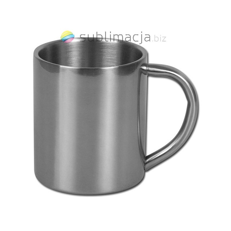 Kubek stalowy o podwójnych ściankach. Pokryty jest specjalną powłoką, przeznaczoną do sublimacji.