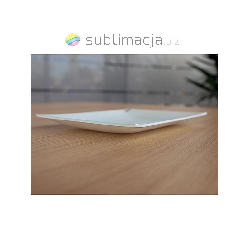 Talerz szklany prostokątny pokryty specjalną powłoką, przeznaczoną do nadruku metodą sublimacji. |
