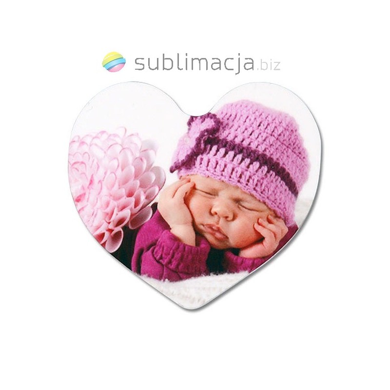 Magnes polimerowy biały, serce, przeznaczony do nadruku metodą sublimacji.
