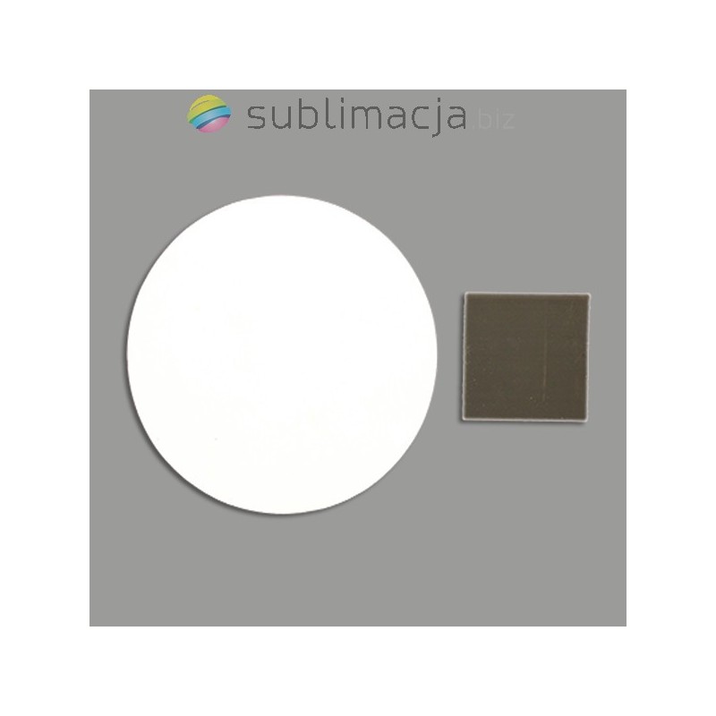 Magnes polimerowy biały, okrągły, przeznaczony do nadruku metodą sublimacji.