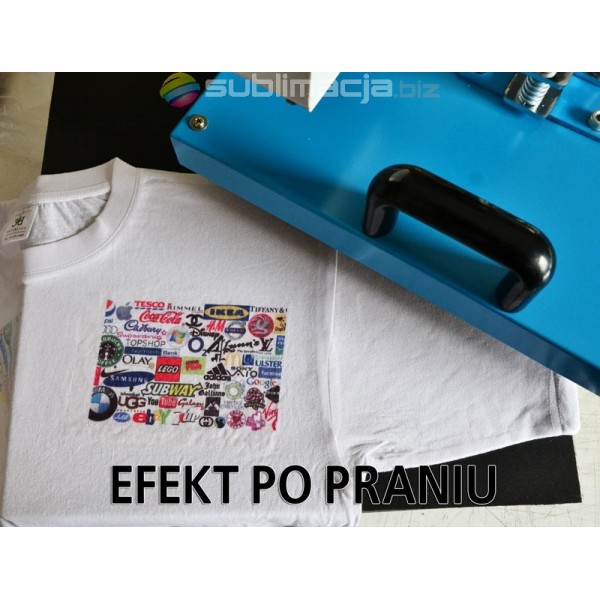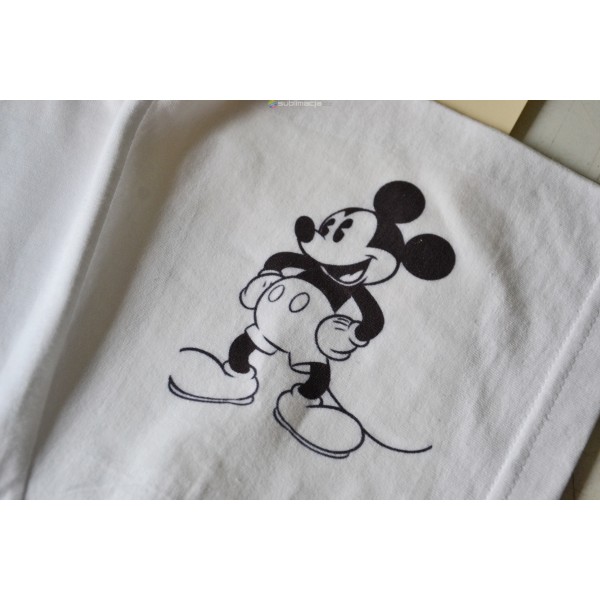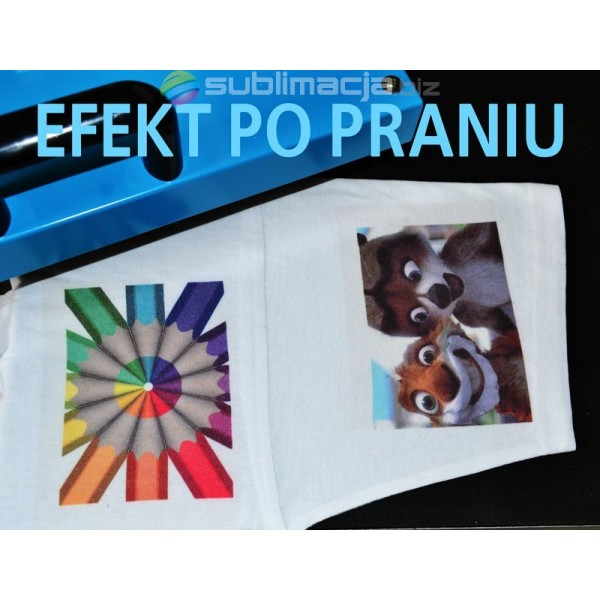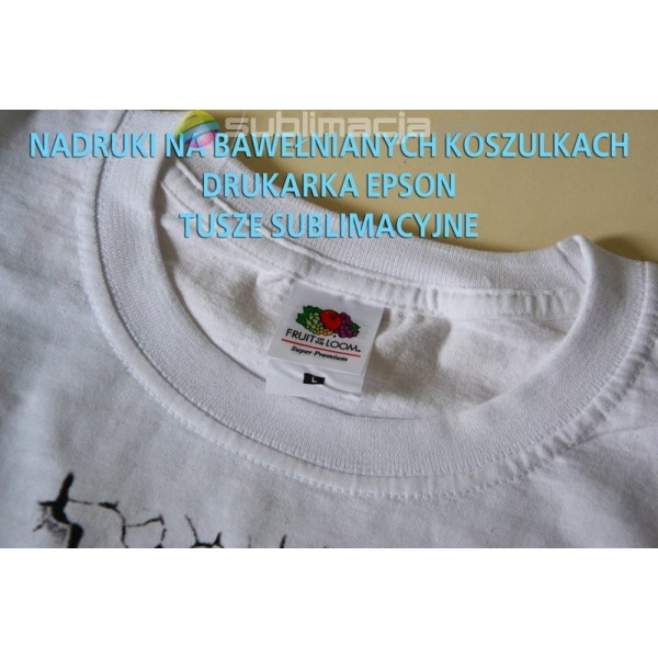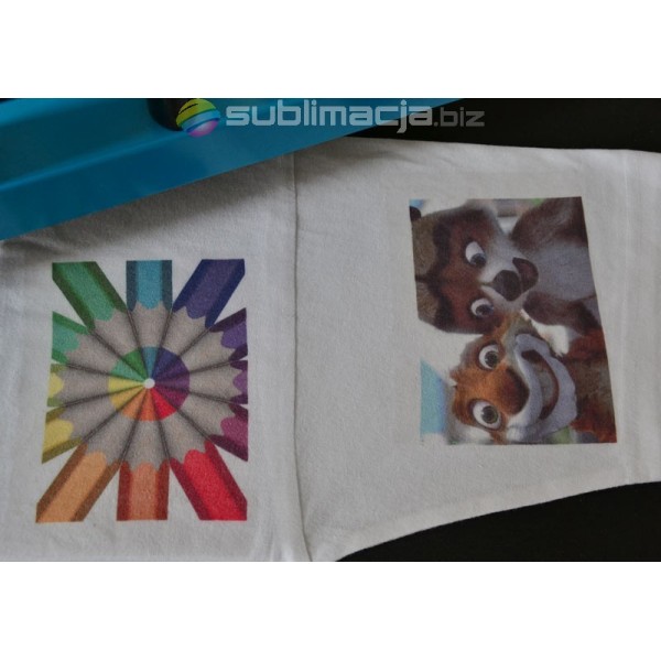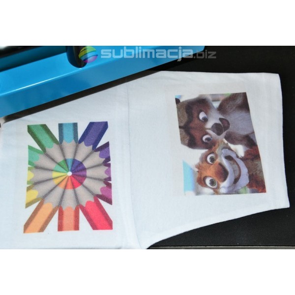 Zastosowanie atramentów sublimacyjnych umożliwia transfer na białe, bawełniane tkaniny. Nadruk pozostaje miękki i miły w dotyku. Po wgrzaniu motywu, na koszulce w niewielkim stopniu widoczne jest przezroczyste tło, dlatego przy transferze najlepiej dociąć papier do obszaru zadruku, nie pozostawiając marginesów.