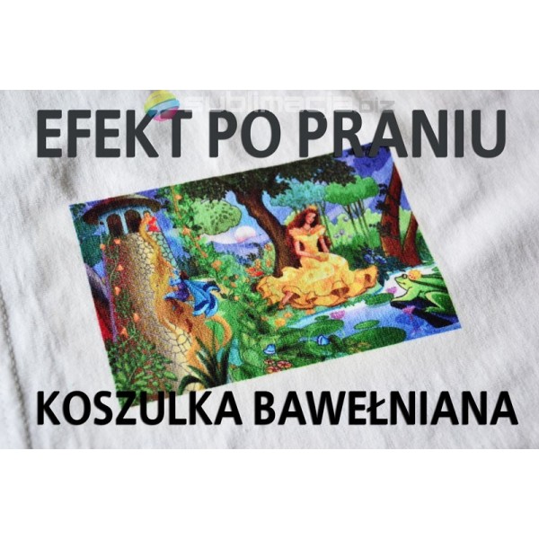 Zastosowanie atramentów sublimacyjnych umożliwia transfer na białe, bawełniane tkaniny. Nadruk pozostaje miękki i miły w dotyku. Po wgrzaniu motywu, na koszulce w niewielkim stopniu widoczne jest przezroczyste tło, dlatego przy transferze najlepiej dociąć papier do obszaru zadruku, nie pozostawiając marginesów.