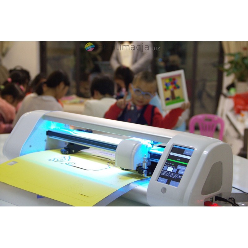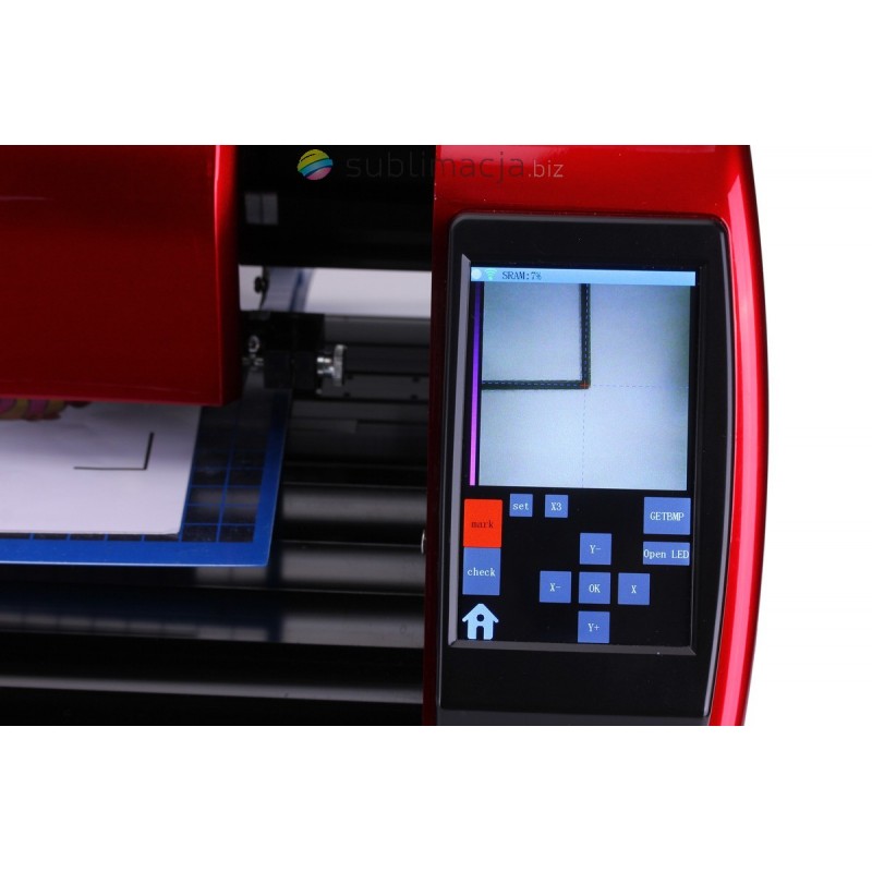 SkyCUT model kamera z wbudowaną kamerą + WIFI ułatwiającą automatyczne cięcie konturowe po znacznikach (dla wydrukowanych naklejek np, z drukarki, plotera). Kolorowy panel/ekran dotykowy, WIFI, maksymalna wygoda obsługi.