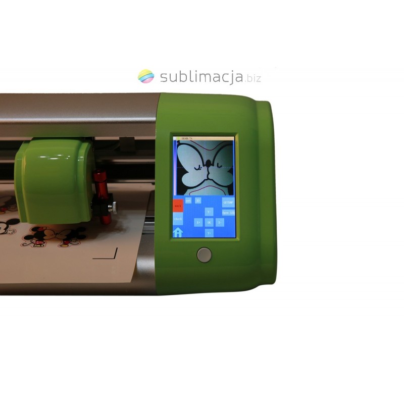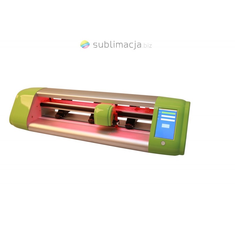 Ploter tnący SkyCUT C24 720mm CAMERA + WIFI + LASER. Kamera - rozpoznawanie znaczników, kolorowy panel dotykowy, WIFI, moduł lasera 2.5W typu półprzewodnikowego do grawerowania. Automatyczne cięcie konturowe wydruków, naklejek, nadruków na białym flexie na bawełnę.