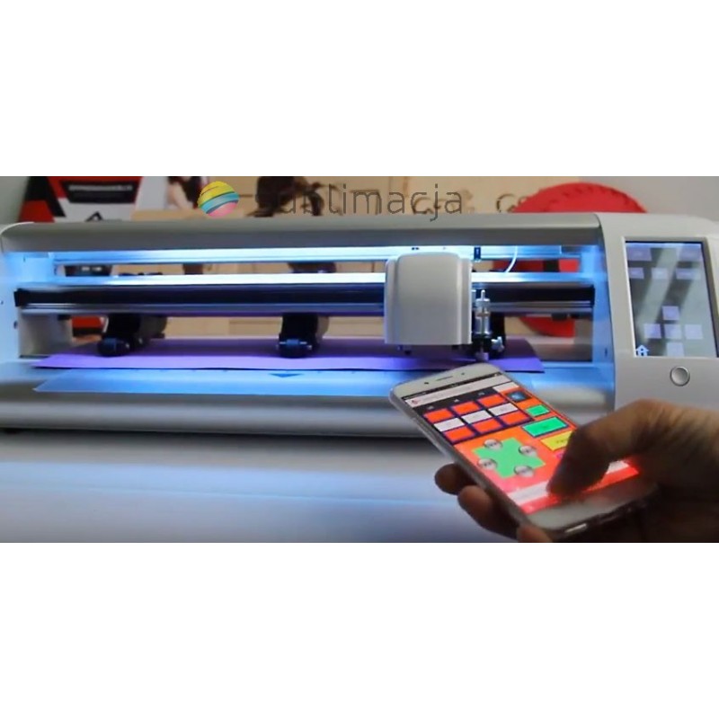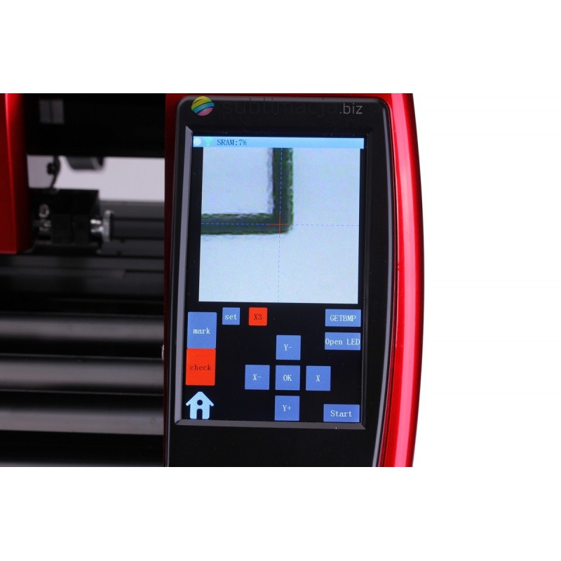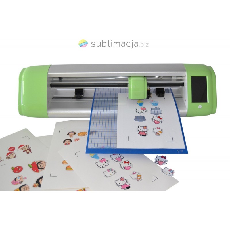 Ploter Krafrowy tnący SkyCUT 360mm. Kamera OPOS- rozpoznawanie znaczników, kolorowy panel dotykowy. Automatyczne cięcie konturowe wydruków, naklejek, nadruków na białym flexie na bawełnę.