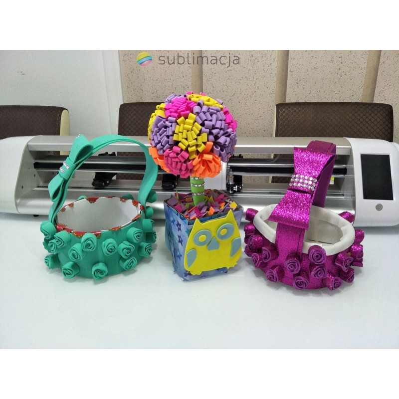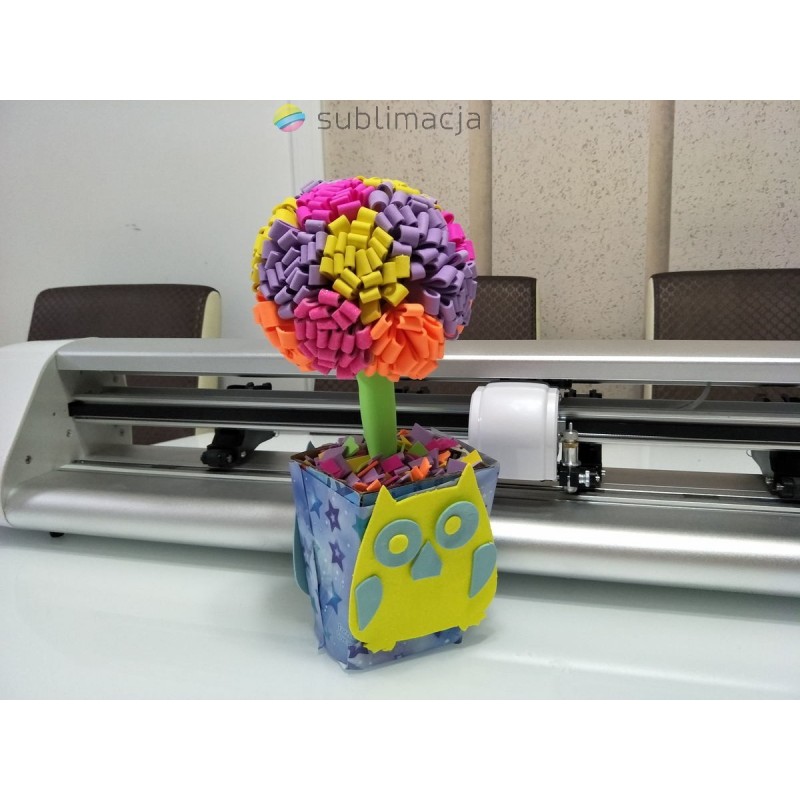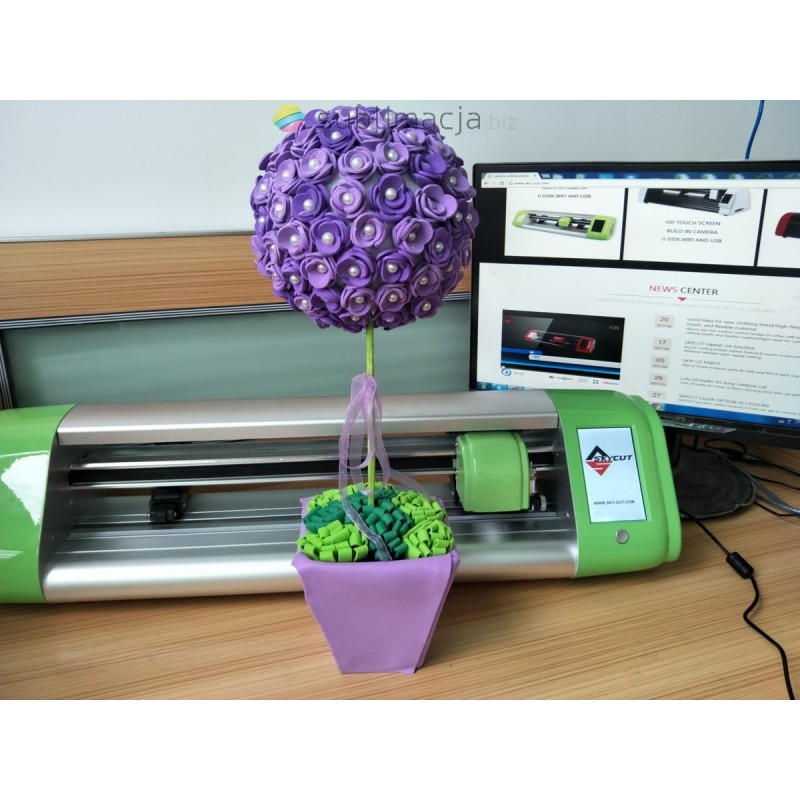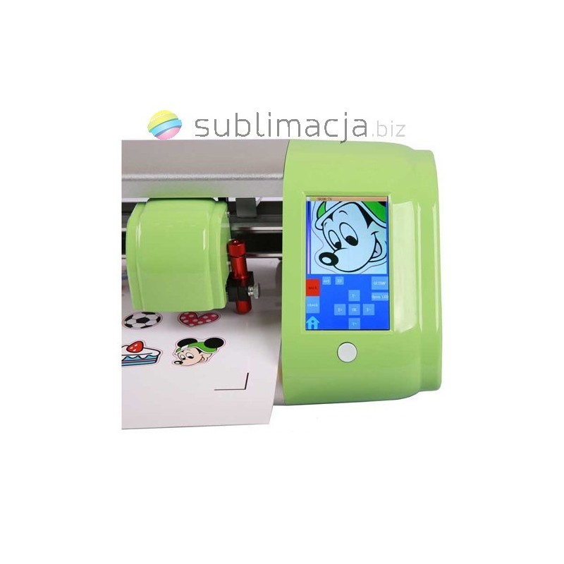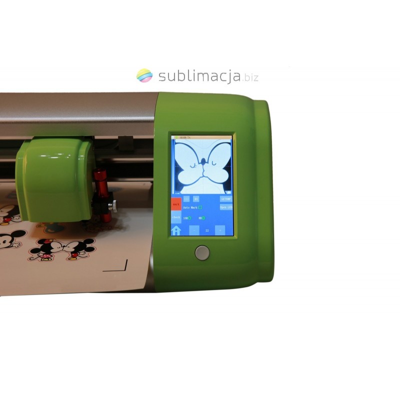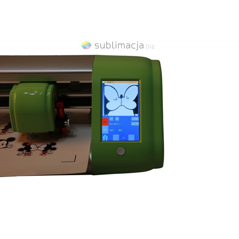Ploter Krafrowy tnący SkyCUT 360mm. Kamera OPOS- rozpoznawanie znaczników, kolorowy panel dotykowy. Automatyczne cięcie konturowe wydruków, naklejek, nadruków na białym flexie na bawełnę.
