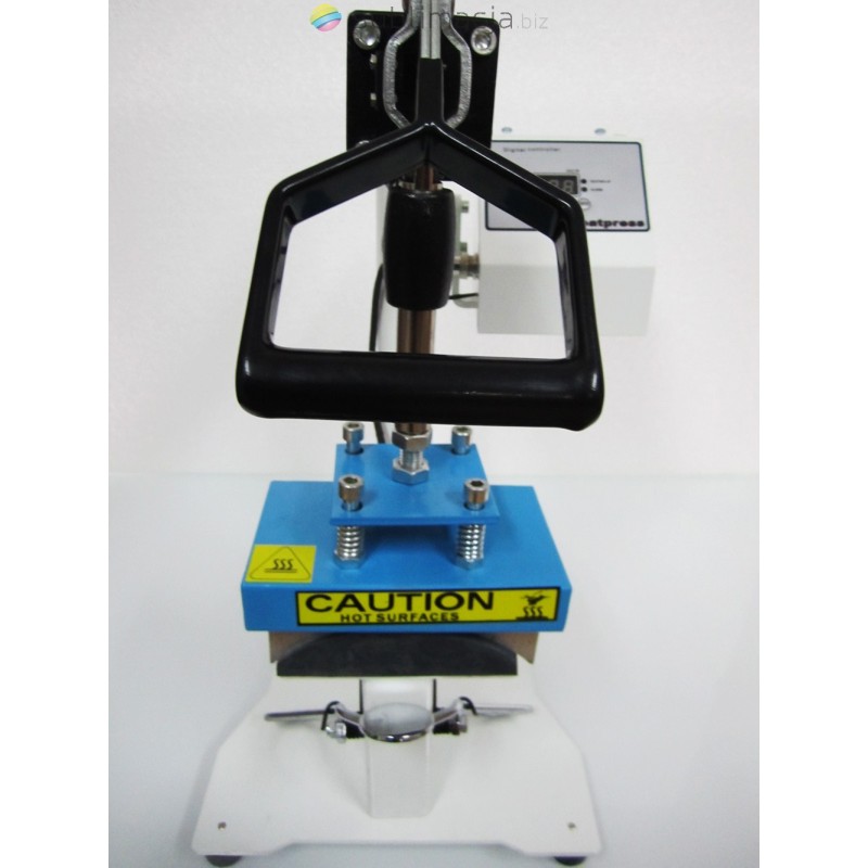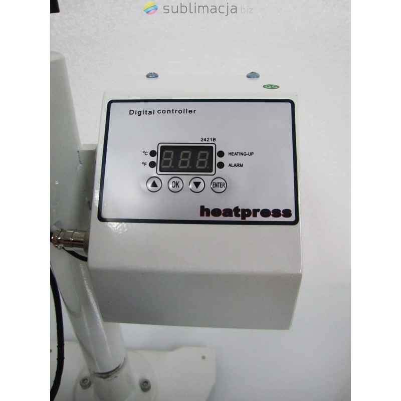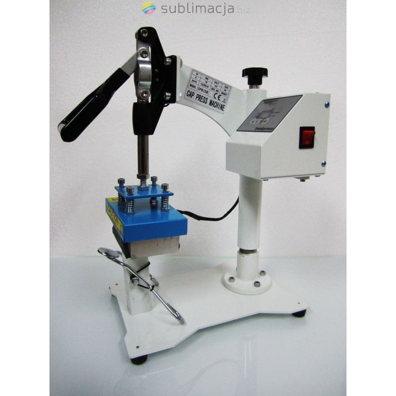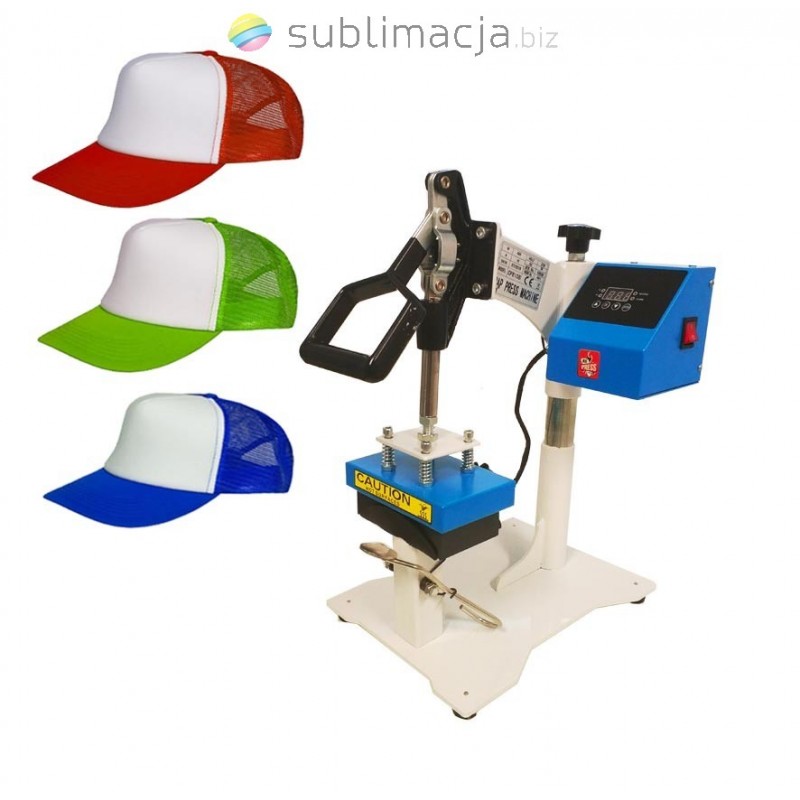 PRASA TERMOTRANSFEROWA DO CZAPEK. Elektronicznie nastawiany czas i temperatura, sygnały świetlne i dźwiękowy. Mata silikonowa grubości 1cm. Temperatura do 230°C termostat.