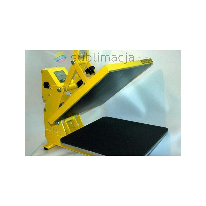 Heat Press MAX AUTO - automatyczna prasa transferowa z automatycznym otwieraniem po upływie czasu wygrzewania. Za pomocą prasy można przenieść swoje wydruki - obrazy na prawie wszystkie materiały (bawełna, jedwab, len, poliester, grawerton...) Płyta grzewcza TEFLONOWA. Podstawa wyłożona jest wytrzymałą pianką silikonową o gr. ok. 1cm. Regulowany docisk płyty grzewczej. Do sublimacji i termotransferu.