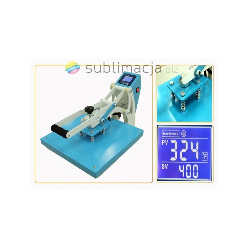 Heat Press MAX PLUS - prasa transferowa. Za pomocą prasy można przenieść swoje wydruki - obrazy na prawie wszystkie materiały (bawełna, jedwab, len, poliester...) Płyta grzewcza TEFLONOWA. Podstawa wyłożona jest wytrzymałą pianką silikonową o gr. ok. 1cm. Płynnie regulowany docisk płyty grzewczej.