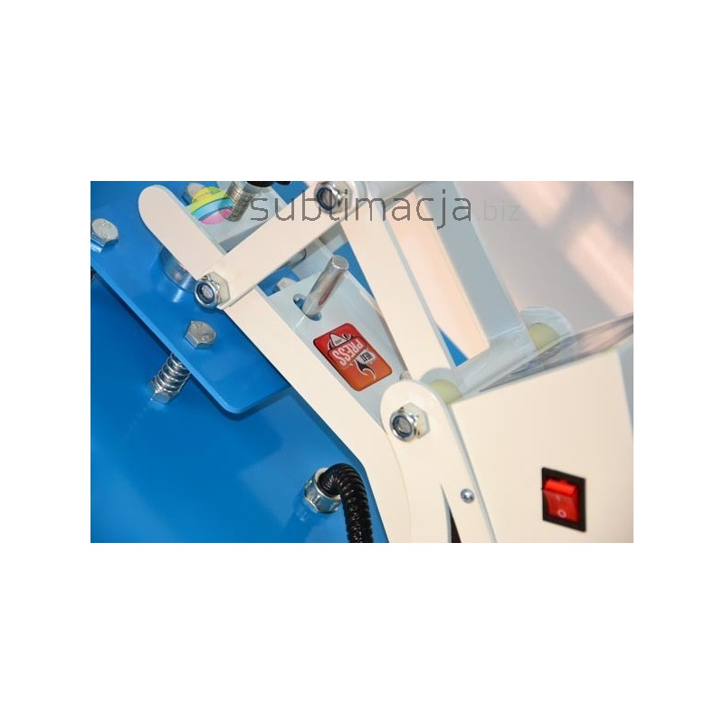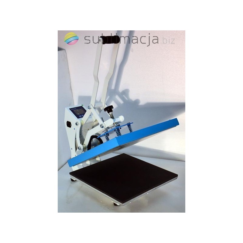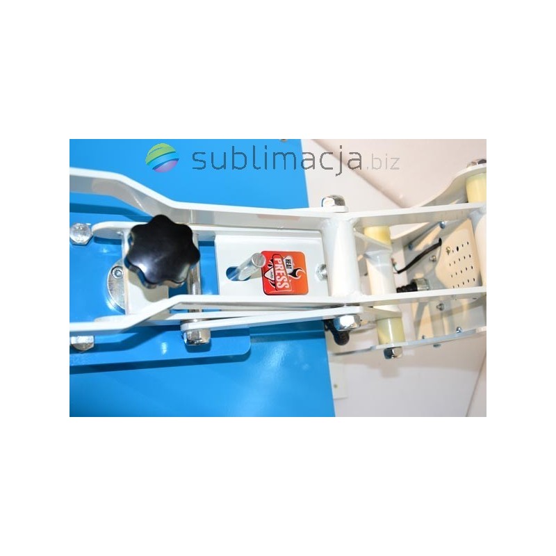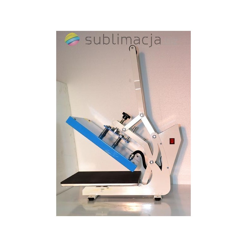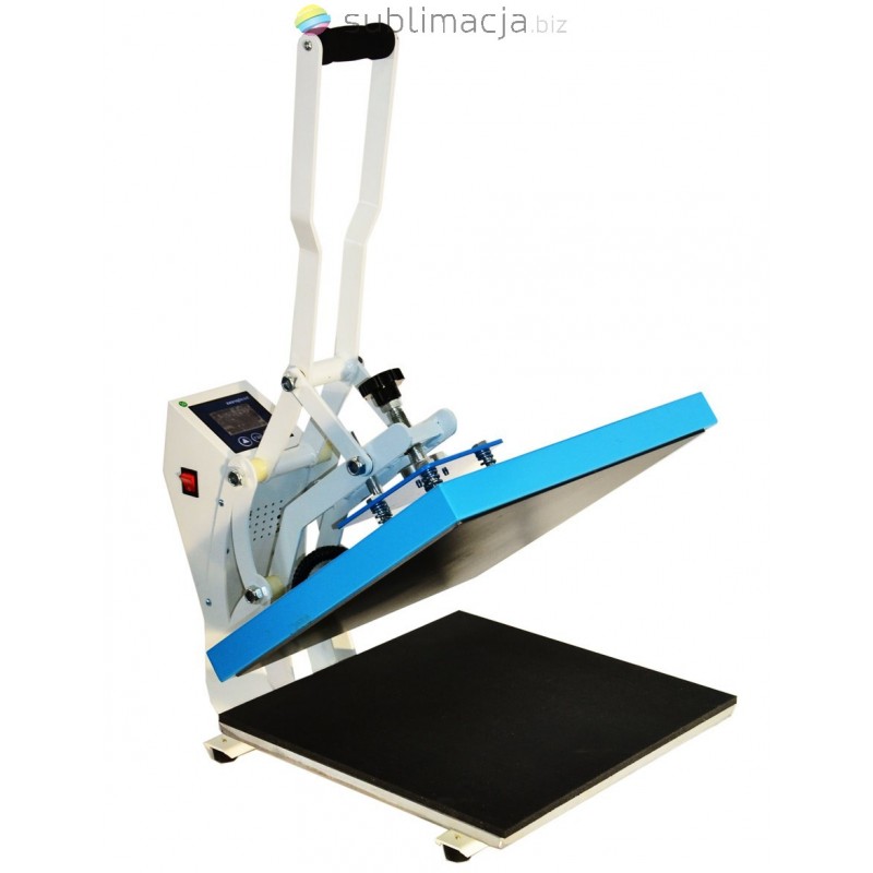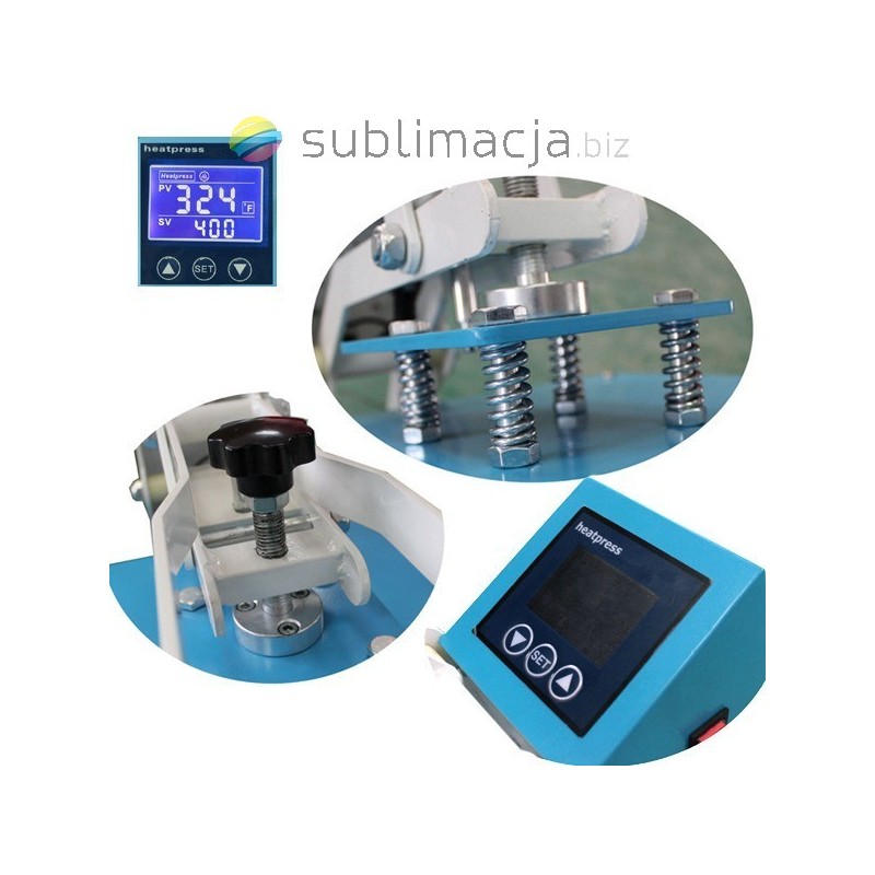 Heat Press MAX PLUS- prasa transferowa. Za pomocą prasy można przenieść swoje wydruki - obrazy na prawie wszystkie materiały (bawełna, jedwab, len, poliester...) Płyta grzewcza TEFLONOWA. Podstawa wyłożona jest wytrzymałą pianką silikonową o gr. ok. 1cm. Płynnie regulowany docisk płyty grzewczej.