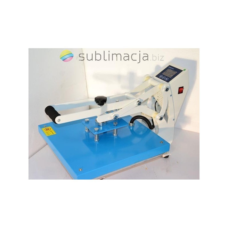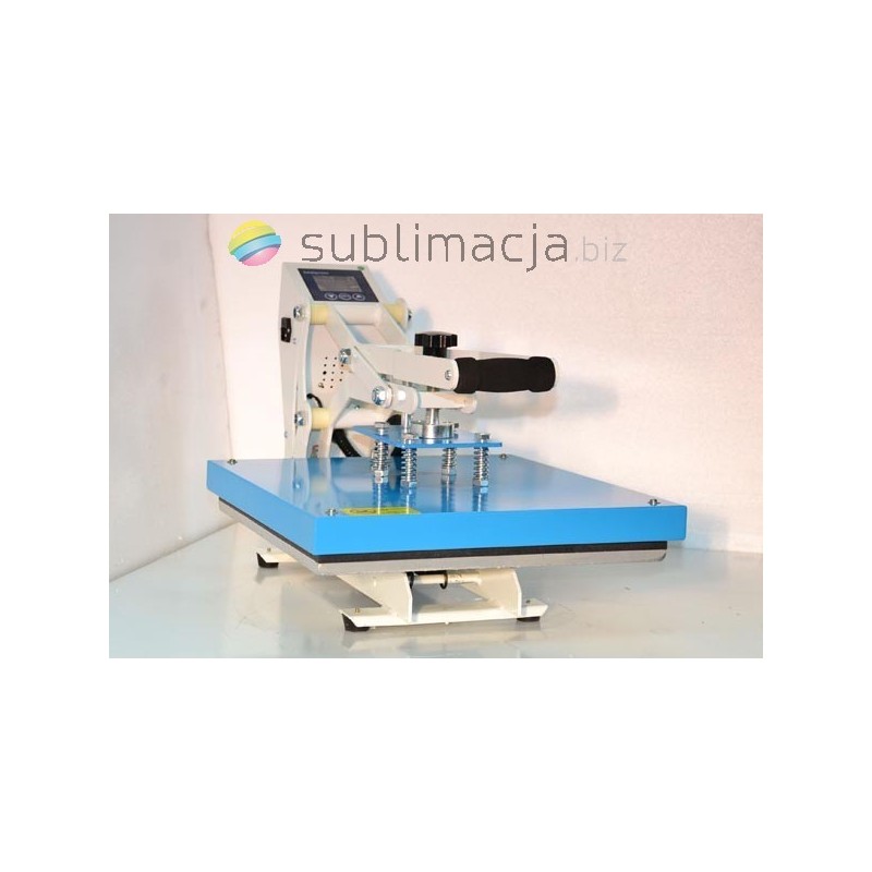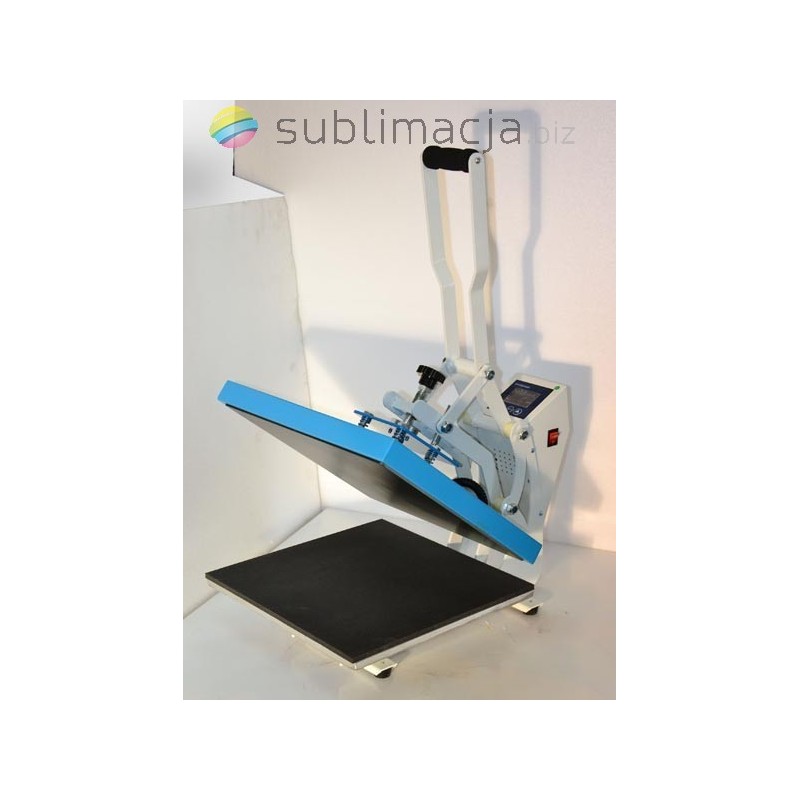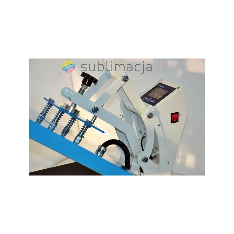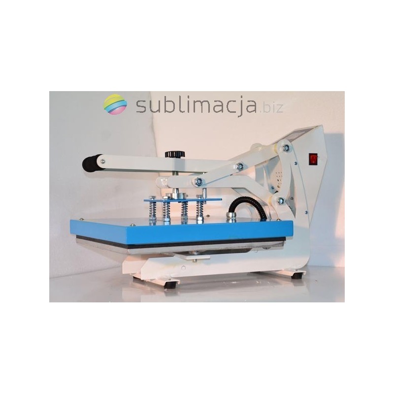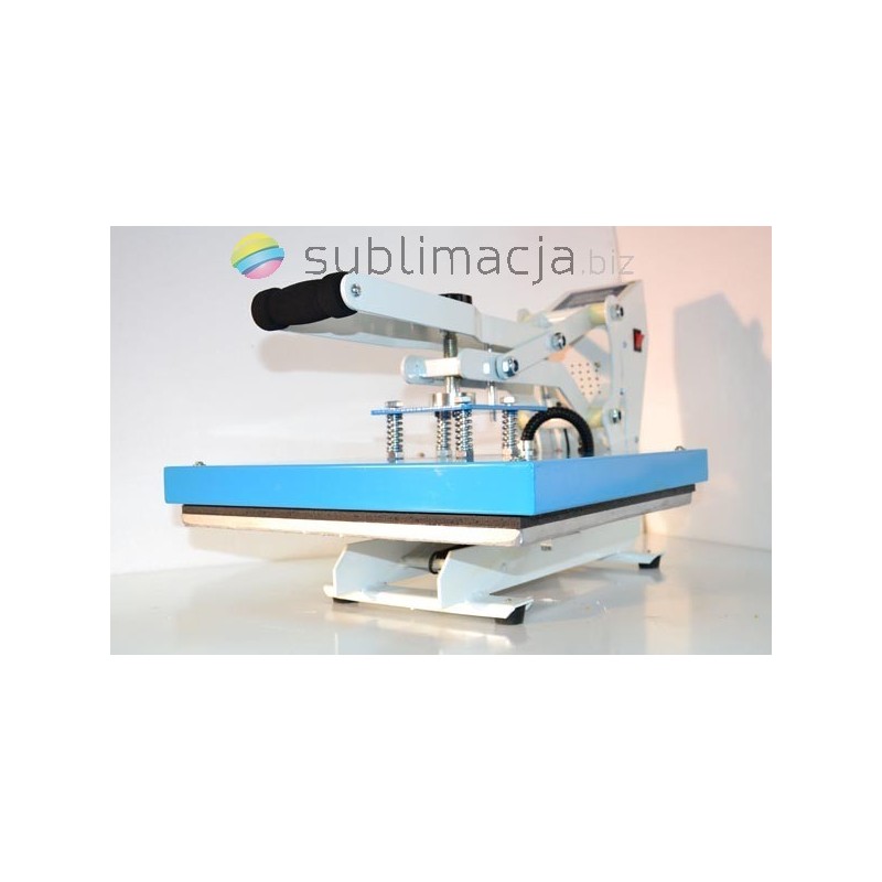 Heat Press MAX PLUS- prasa transferowa. Za pomocą prasy można przenieść swoje wydruki - obrazy na prawie wszystkie materiały (bawełna, jedwab, len, poliester...) Płyta grzewcza TEFLONOWA. Podstawa wyłożona jest wytrzymałą pianką silikonową o gr. ok. 1cm. Płynnie regulowany docisk płyty grzewczej.