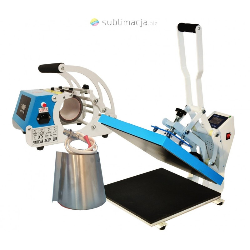 Dzięki Prasie COMBO otrzymujesz rabat i kupujesz w niższej cenie!Heat Press Combo 3in1 - prasa transferowa + prasa Hot-Mug Kubki latte oraz walcowe. Główną zaletą tej prasy jest możliwość pracy z materiałami płaskimi, koszulkami, jak i również z kubkami oraz innymi materiałami cylindrycznymi.
