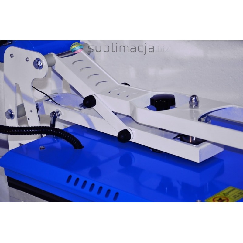 Heat Press MAX AUTO - automatyczna prasa transferowa z automatycznym otwieraniem po upływie czasu wygrzewania. Za pomocą prasy można przenieść swoje wydruki - obrazy na prawie wszystkie materiały (bawełna, jedwab, len, poliester...) Płyta grzewcza TEFLONOWA. Podstawa wyłożona jest wytrzymałą pianką silikonową o gr. ok. 1cm. Regulowany docisk płyty grzewczej. W prasie zastosowano wysuwany łożyskowany stolik zwiększający komfort pracy i precyzję ułożenia elementu wgrzewanego.