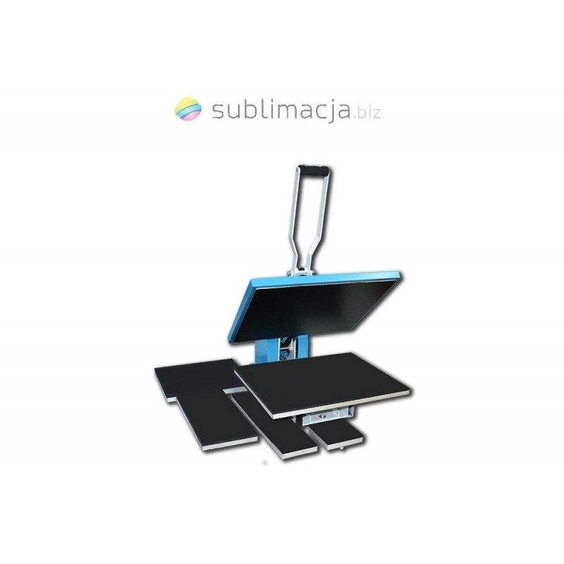 Heat Press Max Multi pozwala na maksymalne poszerzenie działalności firmy. Poprzez 5 wymiennych blatów na jednym urządzeniu możemy wykonać aplikacje na wszystkich możliwych materiałach. Parasole, smycze, rękawki, kieszenie, nogawki, spodnie, czapki, krawaty, kombinezony z trudno dostępnymi do wgrzewania miejscami już nie będą więcej problemem. Szybkość wymiany blatów i rozpiętość ich rozmiarów pozwala na całkowite wykorzystanie możliwości technicznych urządzenia. Jest ono niezbędnym pomocnikiem w każdej firmie promocyjno - reklamowej.Dokładne ustawianie temperatury, równomiernie rozłożone grzałki i płynnie regulowany docisk wraz z kątem rozwarcia ok.80 st. zapewniają w pełni efektywną pracę. Precyzyjne grzanie, sprawdzone przez specjalistów z Politechniki Gdańskiej miernikami elektronicznymi, pozwala na wykonywanie termotransferów na całej powierzchni grzewczej.