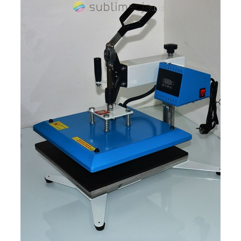 Za pomocą prasy można przenieść swoje wydruki - obrazy na prawie wszystkie materiały (bawełna, jedwab, len, poliester...) Płyta grzewcza TEFLONOWA. Podstawa wyłożona jest wytrzymałą pianką silikonową o gr. ok. 1cm. Regulowany docisk płyty grzewczej.