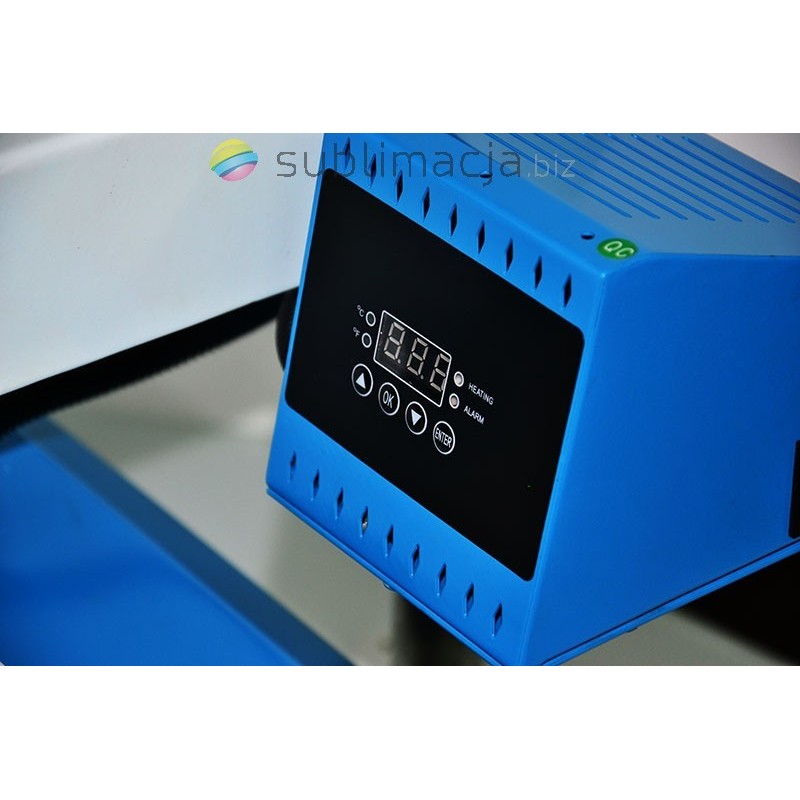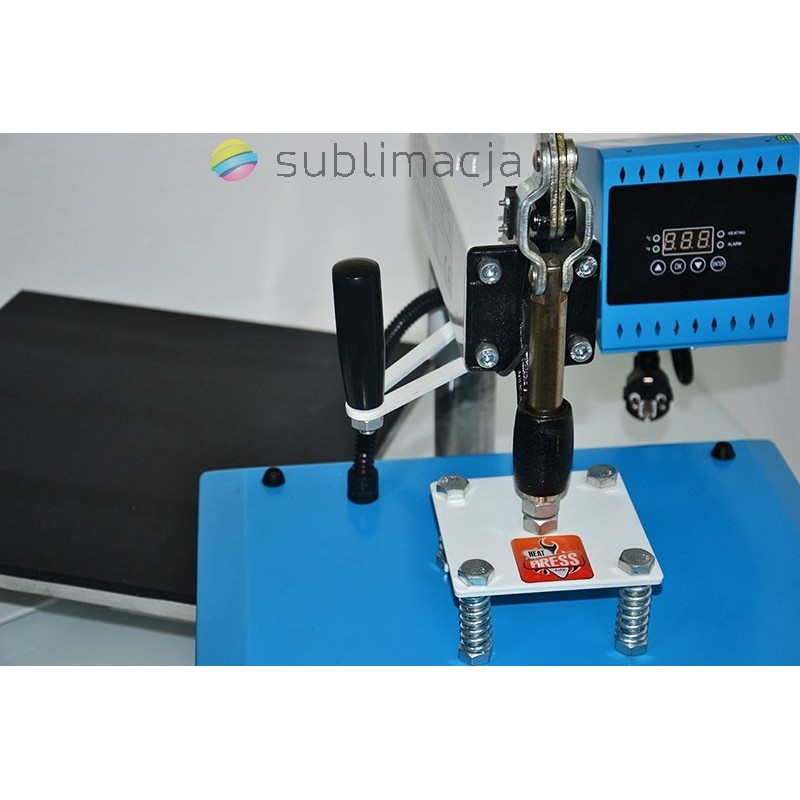 Heat Press MAX - prasa transferowa. Głowna zaletą tej prasy jest zamykanie, otwieranie ręczne w układzie równoległym i odsuwanym.