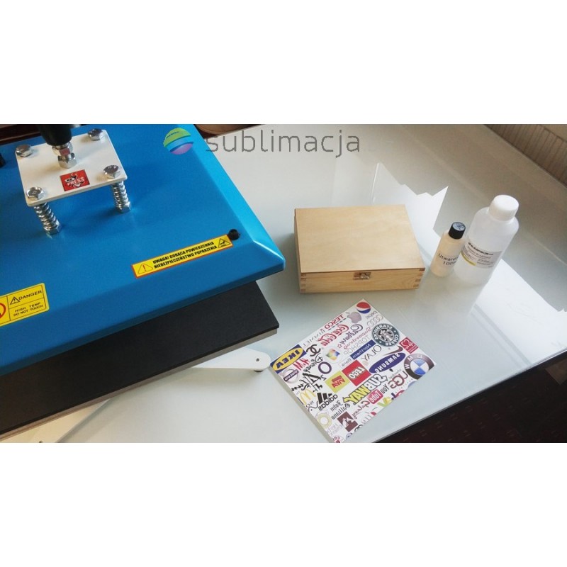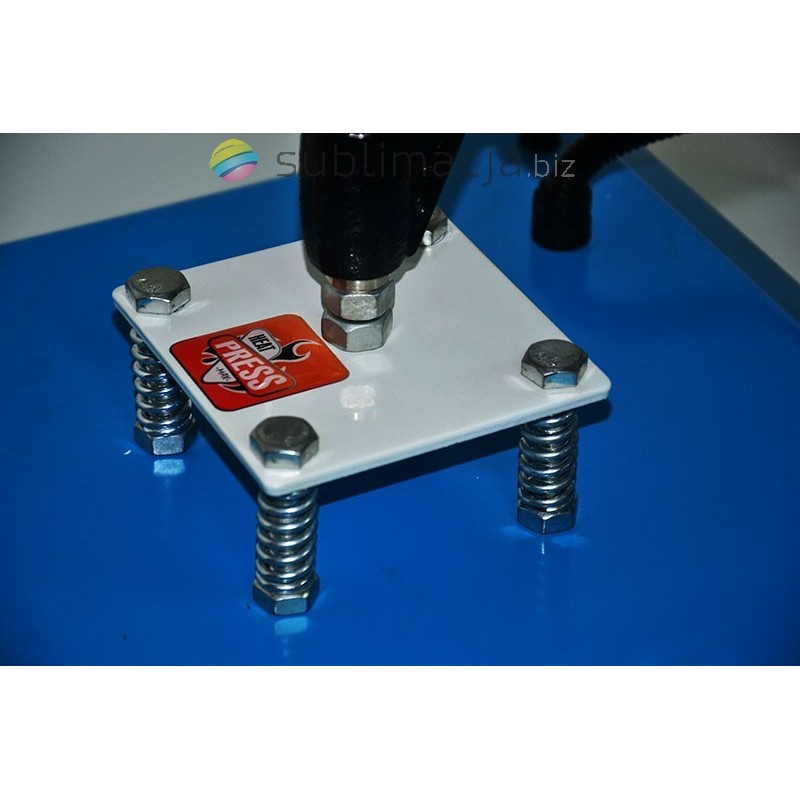 Za pomocą prasy można przenieść swoje wydruki - obrazy na prawie wszystkie materiały (bawełna, jedwab, len, poliester...) Płyta grzewcza TEFLONOWA. Podstawa wyłożona jest wytrzymałą pianką silikonową o gr. ok. 1cm. Regulowany docisk płyty grzewczej.