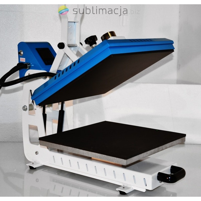 NOWY MODEL lepsza konstrukcja!. Prasa transferowa 38x38cm Heat Press MAX AUTO automatyczne otwieranie oraz wysuwany łożyskowany stolik. Heat Press MAX AUTO - automatyczna prasa transferowa z automatycznym otwieraniem po upływie czasu wygrzewania.