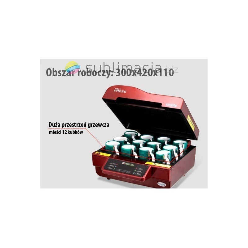 Wielofunkcyjna prasa 3D do sublimacji, zaprojektowana by poddawać sublimacji wiele przedmiotów wykorzystując jedno urządzenie.