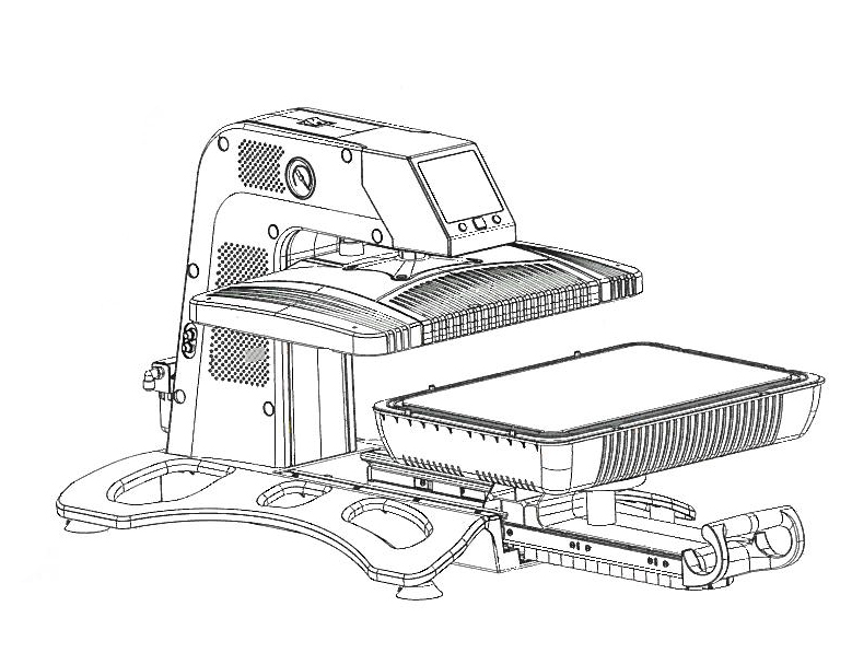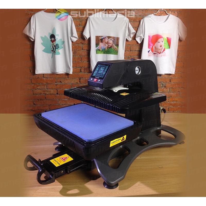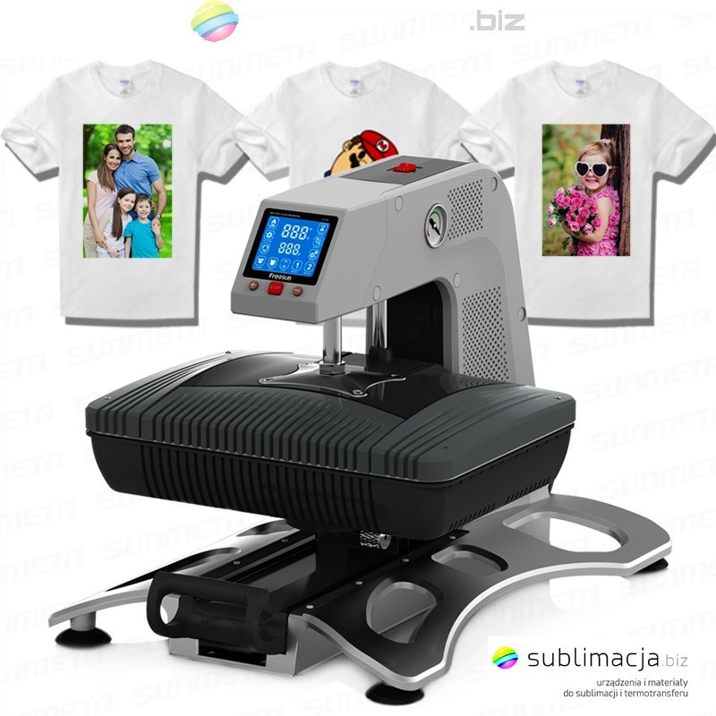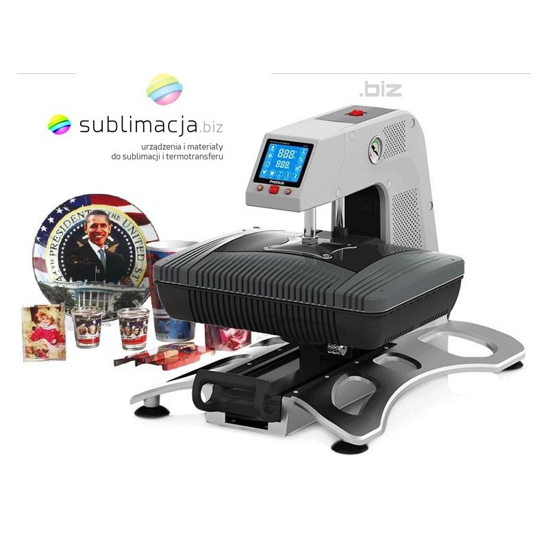 Wielofunkcyjna pneumatyczna prasa 3D do sublimacji i termotransferu, zaprojektowana by poddawać sublimacji wiele przedmiotów wykorzystując jedno urządzenie.