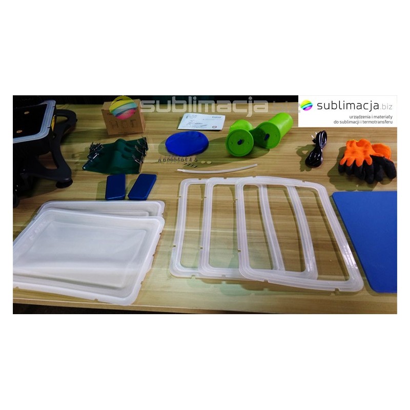 Dzięki zastosowaniu technologi podsys która polega na całkowitym odprowadzeniu powietrza z urządzenia można wykonywać nadruki na kilku przedmiotach o różnych kształtach.