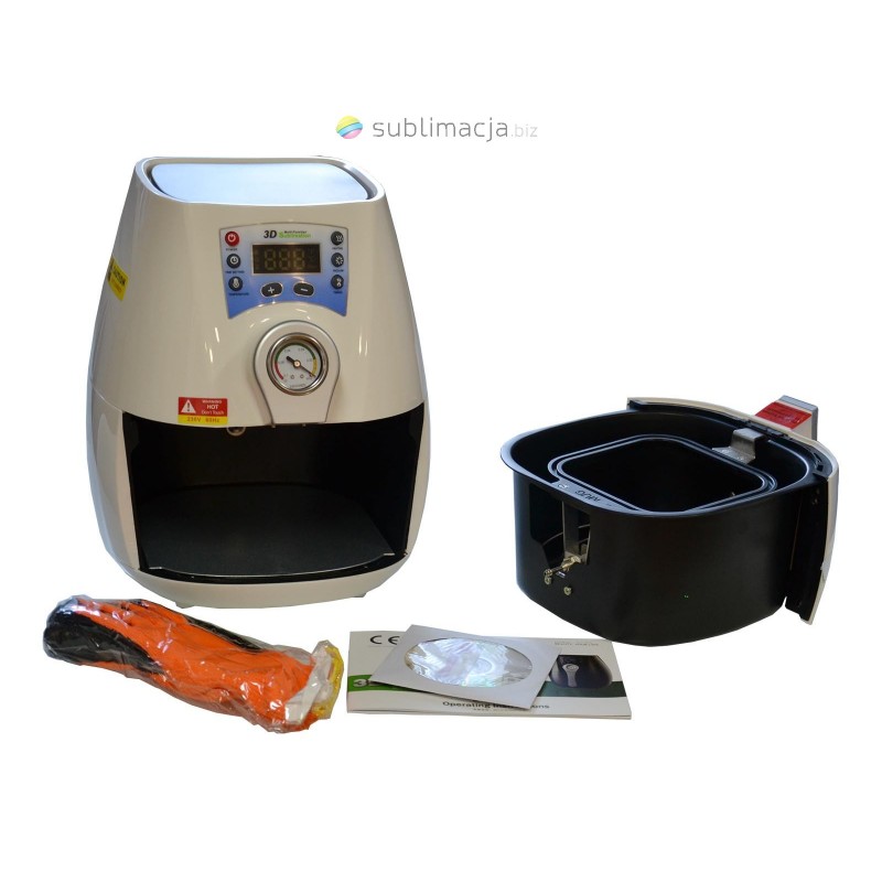 Wielofunkcyjna mini prasa 3D do sublimacji i termotransferu, zaprojektowana by poddawać sublimacji wiele przedmiotów wykorzystując jedno urządzenie.