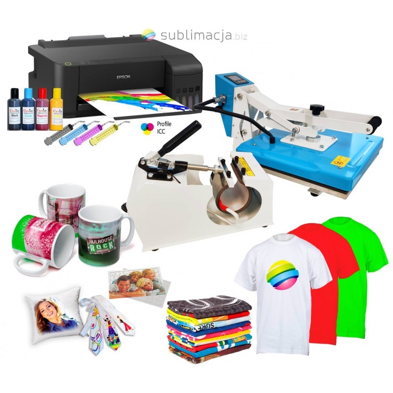 Zestaw składa się z prasy płaskiej, hot mug, drukarki z tuszami sublimacyjnymi, oto co je charakteryzuje: